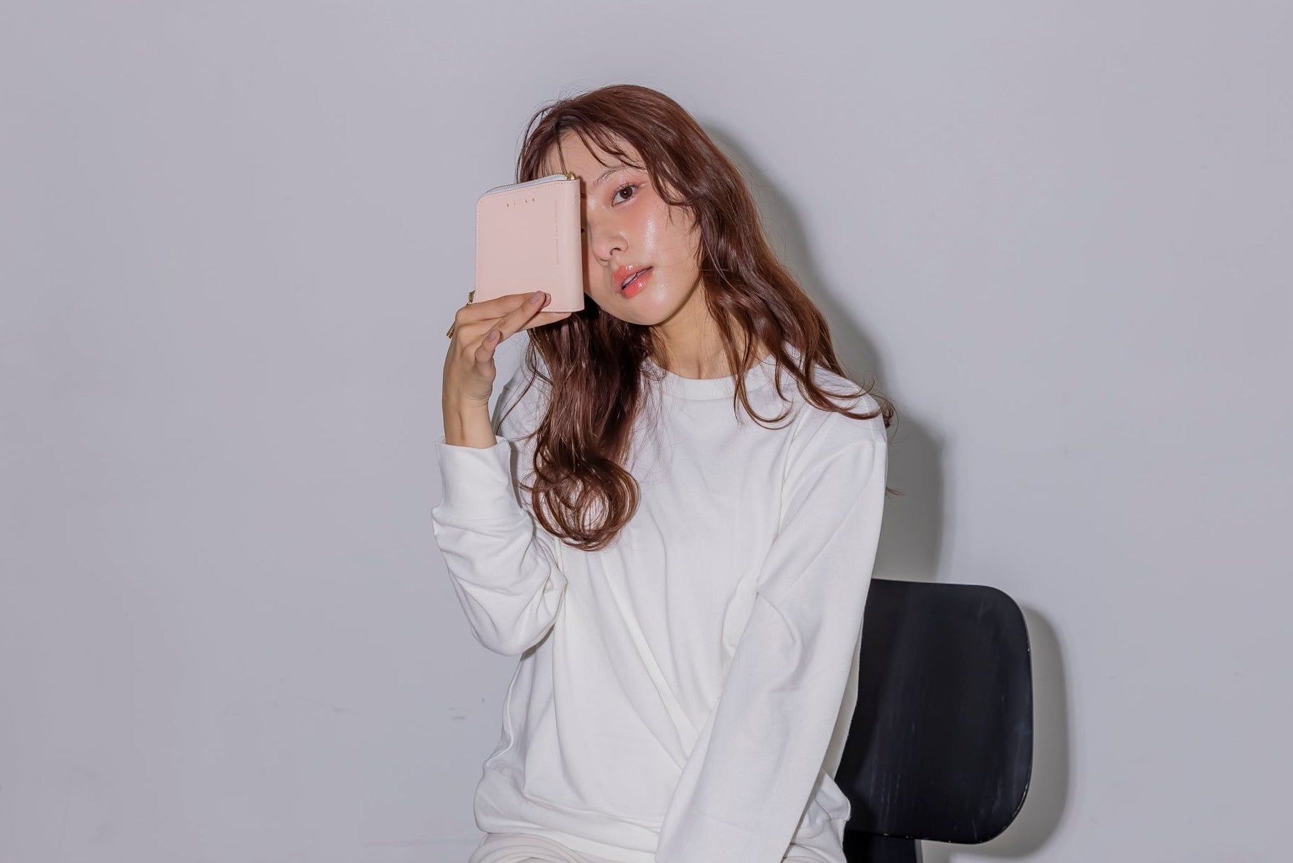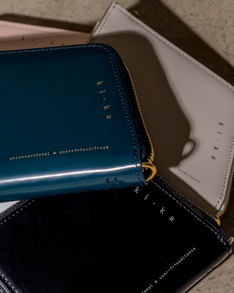 意匠登録済みの、直線でも曲線でもない独自のフォルムに、ガラスレザーならではの透明感と奥行きのある艶をまとわせました。